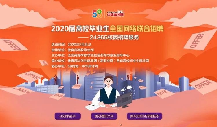 據(jù)了解,此次活動(dòng)由教育部高校學(xué)生司指導(dǎo),教育部全國(guó)高等學(xué)校學(xué)生信息咨詢與就業(yè)指導(dǎo)中心主辦,教育部大學(xué)生就業(yè)網(wǎng)(新職業(yè)網(wǎng))、各省級(jí)高校畢業(yè)生就業(yè)網(wǎng)承辦,前程無(wú)憂、智聯(lián)招聘、BOSS直聘、中華英才網(wǎng)、獵聘網(wǎng)等五家社會(huì)招聘網(wǎng)站協(xié)辦。新職業(yè)網(wǎng)負(fù)責(zé)管理統(tǒng)一的“24365校園招聘服務(wù)”活動(dòng)平臺(tái),五家社會(huì)招聘網(wǎng)站在各自平臺(tái)開(kāi)辟“24365校園招聘服務(wù)”專(zhuān)欄,初期預(yù)計(jì)提供就業(yè)崗位信息80余萬(wàn)條。
