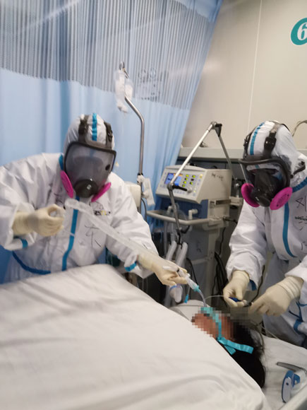 26日,來自重慶江北區人民醫院主任醫師鄧清軍、潼南區人民醫院副主任醫師楊東和云夢縣人民醫院ICU護士長龔翠紅就對該縣首例新冠肺炎患者進行了插管救治。