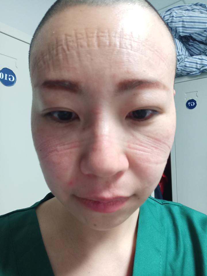 被護目鏡壓出的痕跡。受訪者供圖 華龍網-新重慶客戶端發