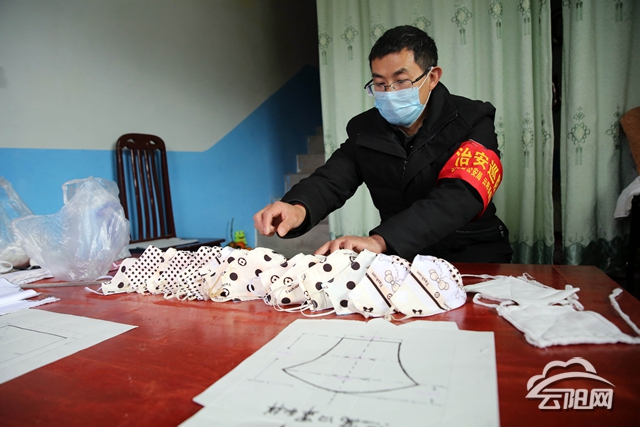 當時,按照村規民約,村民不戴口罩,不準進出村,更不準上街。在守好村民進出卡的同時,袁中全在網上搜索口罩的做法,在眾多的口罩造型型中選擇了方形的紗布口罩和燕窩口罩兩個類型。
