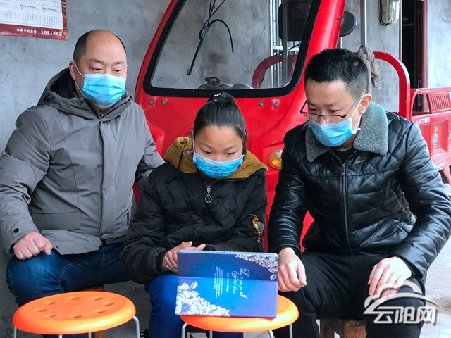 3月3日,學校分管教學負責人帶領班主任和信息技術老師深入這些學生家中,第一時間將平板電腦和流量卡送到她們手中,一行老師現(xiàn)場為他們下載好線上教學軟件,同時教會學生和家長操作方法,解決孩子們線上教學的后顧之憂。