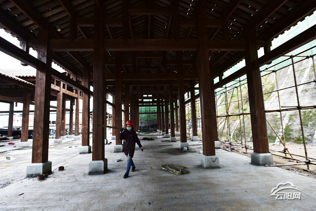 仿古建筑者們在云陽張飛廟風(fēng)清街施工工地勞動,為爭取這條民俗街早日建成開放而奮戰(zhàn)。