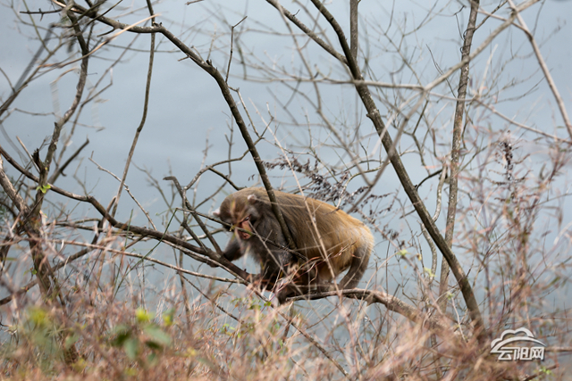 云陽網(wǎng)訊(記者 李充)3月6日,在縣城木魚包公園一處臨江山崖上,一只“美猴王”正在悠閑自得地享用市民提供的“免費午餐”。