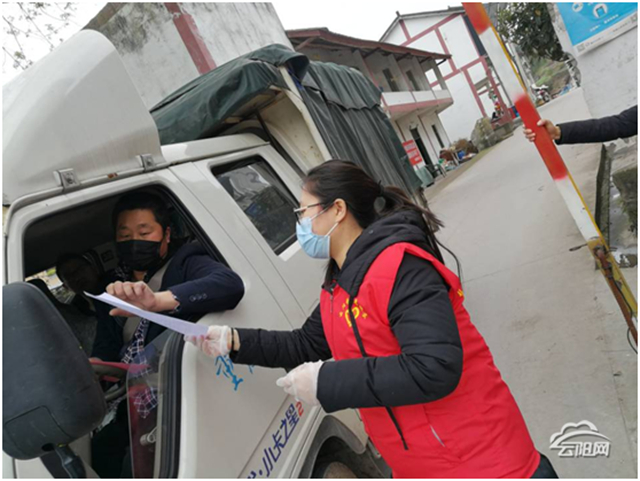 第二小組在民強(qiáng)村勸導(dǎo)站協(xié)助進(jìn)行來(lái)往車輛登記,向車主發(fā)放宣傳頁(yè),提示車主做好防護(hù)工作,注意車門(mén)把手、方向盤(pán)等位置要做好消毒。