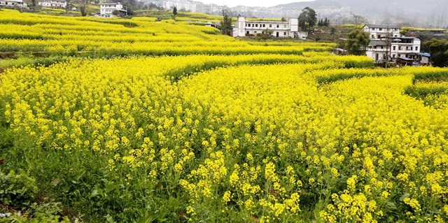 眼下,在棲霞鎮(zhèn)的各處田野里,徐徐鋪開一片片金黃。漫山的油菜花似乎都在共同訴說著春日的浪漫詩意。當行走在油菜花田間,空氣中彌漫著濃濃的花香,目光所及之處,蜂飛蝶舞,花團錦簇,房前屋后的田地里、土坡中都開遍了油菜花,美不勝收。