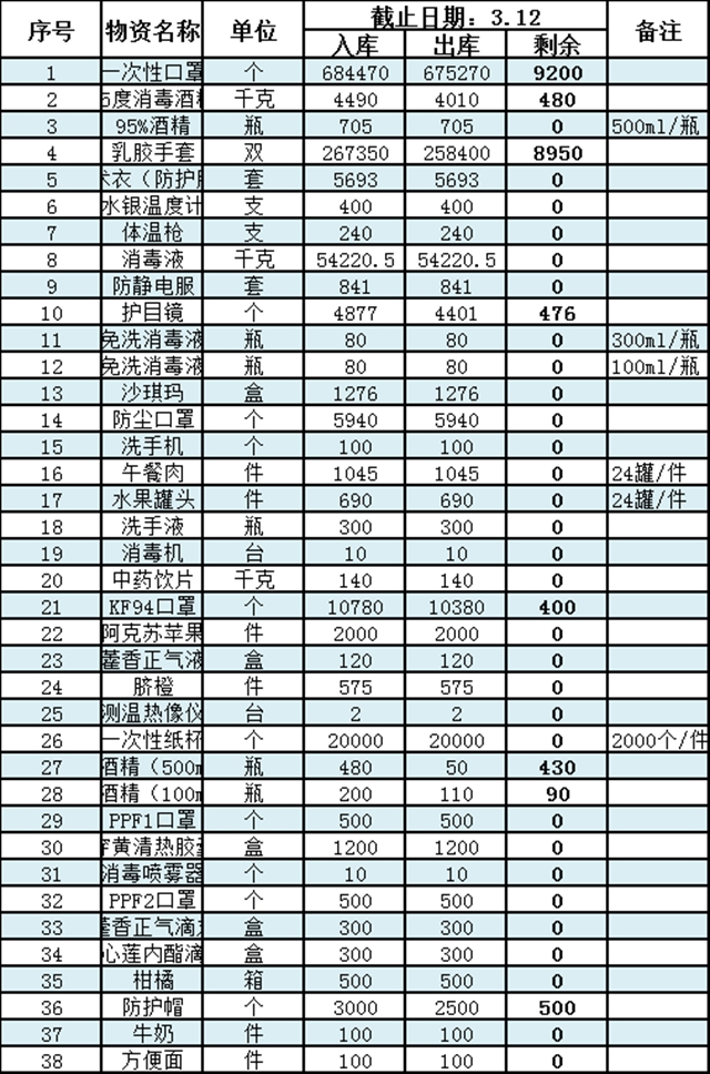截止3月12日15時,一是縣慈善會共接收的資金1986592.86元,已按捐贈人意愿定向撥付到相關單位的資金有203600.00元,統一撥付縣國庫集中支付中心130萬元,用于集中采購醫療防護物資;28500元的物資已發放。
