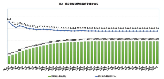 市衛(wèi)生健康委通報(bào),3月13日0—24時(shí),重慶無新冠肺炎新增確診病例報(bào)告,新增治愈出院病例2例。截至3月13日,現(xiàn)有在院確診病例4例(無重型和危重型病例),累計(jì)死亡病例6例,累計(jì)治愈病例566例,累計(jì)報(bào)告確診病例576例。累計(jì)排除3532例疑似病例,現(xiàn)無疑似病例待排查。累計(jì)追蹤到密切接觸者23688人,已解除醫(yī)學(xué)觀察23606人,尚有82人正在接受醫(yī)學(xué)觀察。