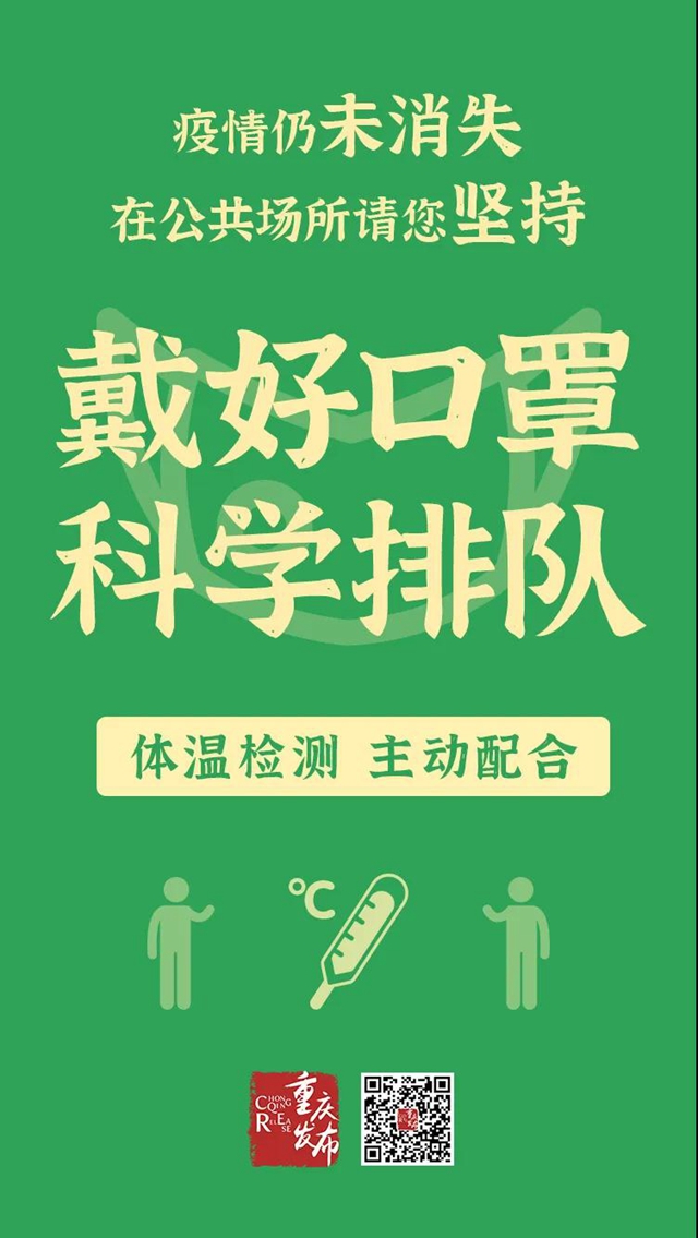 專家認(rèn)為,重慶所有區(qū)縣連續(xù)18日無新增確診病例,現(xiàn)有在院確診病例為零的區(qū)縣增至37個(gè),疫情防控形勢(shì)持續(xù)向好。但境外疫情快速發(fā)展,外防輸入工作面臨新的挑戰(zhàn);隨著逐步復(fù)工復(fù)產(chǎn)復(fù)市,人員流動(dòng)和聚集增加帶來的疫情傳播風(fēng)險(xiǎn)仍然存在。