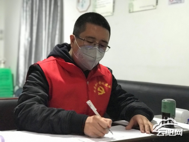 這位正在給商戶檢查登記的云陽人叫余星江,家住云陽縣雙江街道,巴南區公路公司(區屬國有企業)工程部部長,疫情發生以后,已在疫情防控隔離定點醫院連續工作14天的余星江,接到巴南區委組織部通知后,馬不停蹄又趕到了李家沱街道馬一社區,投入到了抗疫工作中。