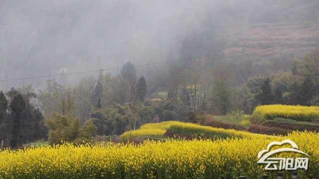 沒有平原油菜的相連成片氣勢感,寶坪鎮(zhèn)的油菜散落于山鄉(xiāng)田野,卻錯落有致,用恬淡和隨性自成一派。它們綻放在長江之畔,目送著一江春水和匆匆行船,把巍峨遠(yuǎn)山和文峰寶塔攬入畫中,一展峽江風(fēng)情;它們環(huán)繞著村莊、公路,為田園披上一塊塊金黃錦緞;它們點(diǎn)綴在山間,輕撥開縹緲的云霧,渲染出大自然的氤氳詩畫。
