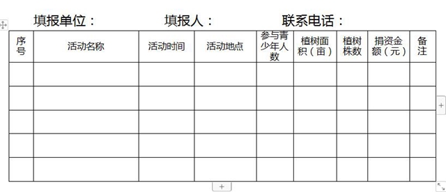 “我為祖國植10棵樹”2020年青少年義務植樹活動統計表