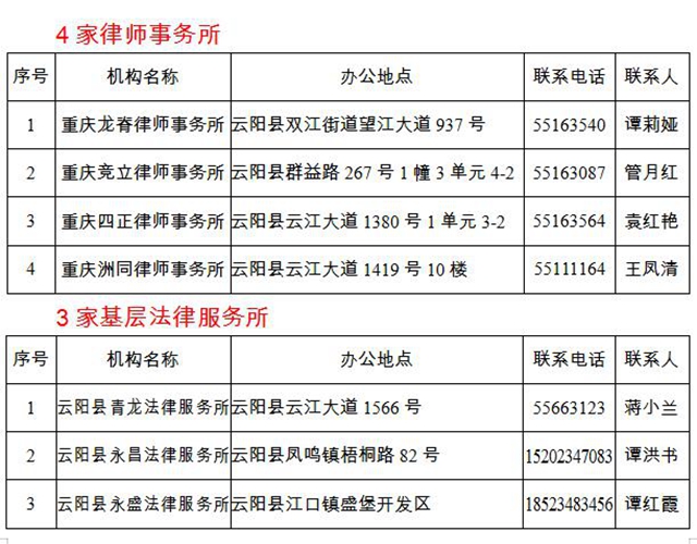 “助企抗疫·司法同行”!全縣法律服務機構將竭誠為企業復工復產做好法律服務等工作,及時化解合同履約、企業債務、勞資關系等糾紛。四家律師事務所結對服務“四上企業”(龍脊所—工業類、商貿類企業,競立所—服務類企業,四正所—涉農類企業,洲同所—建筑類企業)。小微企業和個體工商戶原則上由屬地司法所提供法律服務或法律業務需求指引。現將全縣法律服務機構向社會公開,便于企業查詢聯系。