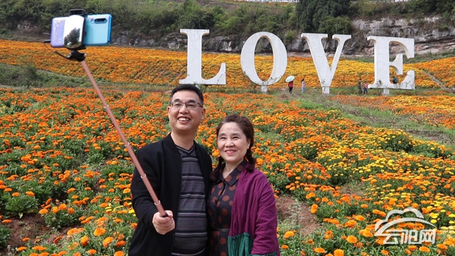 走進(jìn)花千谷,映入眼簾的是正處盛花期的金盞菊,山坡、田野被成片的花朵裝扮得花團(tuán)錦簇。清新的嫩黃、熱烈的金黃,深淺交融,層次分明,如多彩錦緞,似流云璃彩,盡顯春日浪漫。花田小徑里,游客們徜徉于花海之中,或閑散踱步,或聞香識花,不時還定格下美好瞬間,春光大美,每個人都流連忘返。除了本地市民外,還有不少來自萬州、開州的游客。萬州游客黃河和妻子一起慕名而來。“春暖花開,草長鶯飛的時節(jié),我們專程從萬州來云陽花千谷玩,一路上都是美麗的風(fēng)光,給我們留下了深刻的印象。”游客黃河表示。