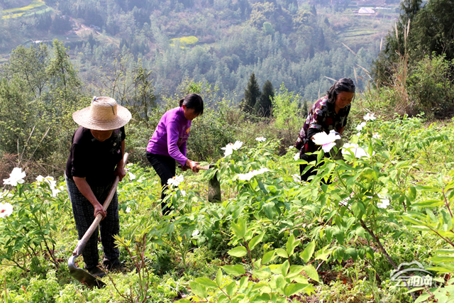 云陽網訊(記者 鄭紅均 陳小婭)眼下正是藥牡丹盛開的季節,3月27日,記者來到鳳鳴鎮農建村,20公頃藥牡丹競相綻放,工人正在園內除草、施肥。