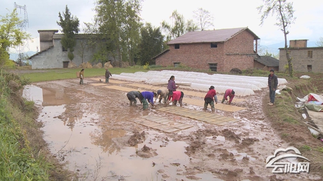 云陽網訊(記者 劉林)海拔900米以上的雙土鎮坪東村,擁有悠久的水稻種植歷史。近日,稻田里,農戶們正在市科技特派員姚雄的指導下,用機插秧稀泥育秧技術擺盤育秧。