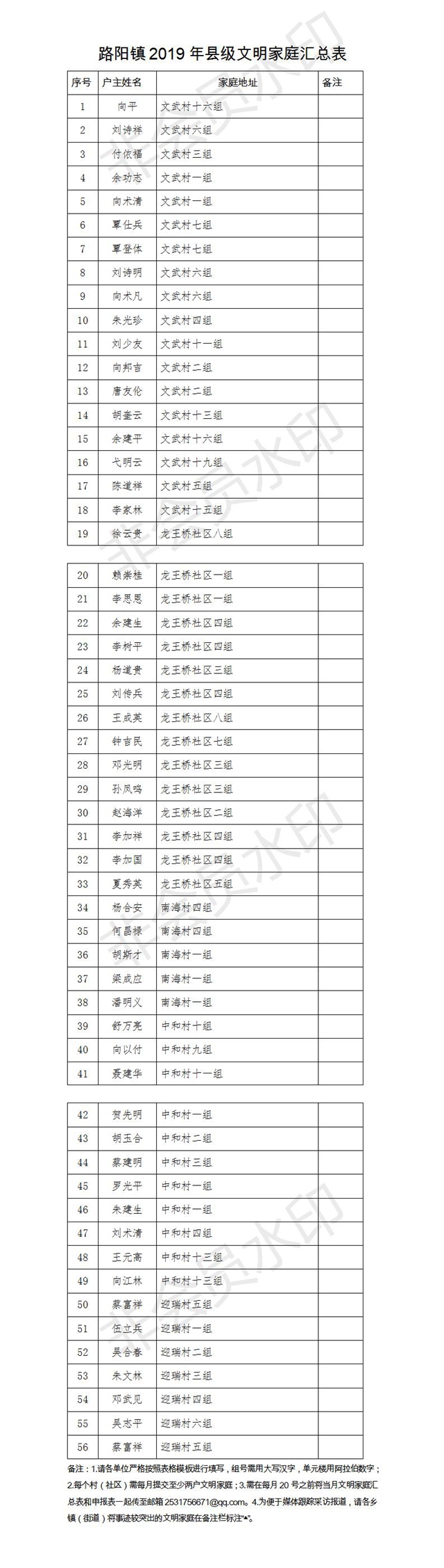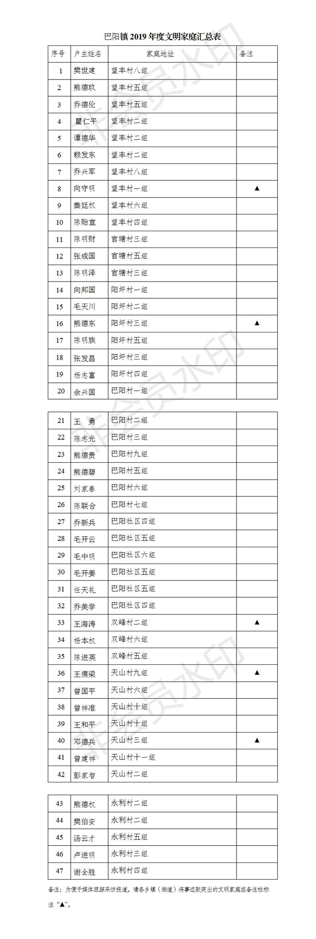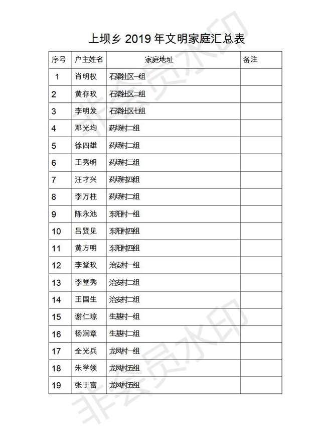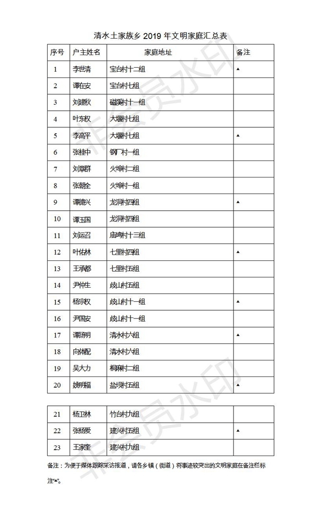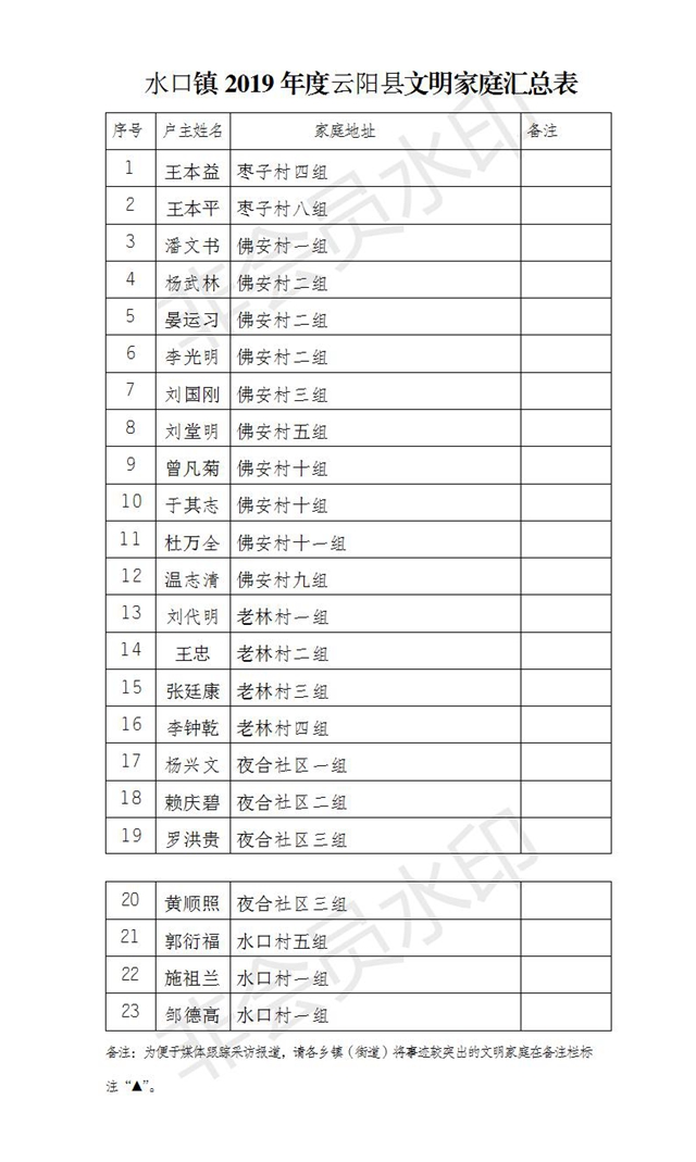 根據(jù)《云陽縣精神文明建設(shè)委員會關(guān)于深化文明家庭創(chuàng)建評選活動的通知》(云文明委〔2017〕4號)和《關(guān)于對文明家庭創(chuàng)建評選活動有關(guān)事項作出調(diào)整的通知》(云文明辦白頭)文件要求,縣文明辦認(rèn)真組織開展2019年度縣級文明家庭創(chuàng)建評選工作,經(jīng)村(社區(qū))自評、鄉(xiāng)鎮(zhèn)(街道)初評、縣文明辦終評等程序,已評選出2019年度縣級文明家庭。現(xiàn)將2019年度縣級文明家庭名單公示如下。