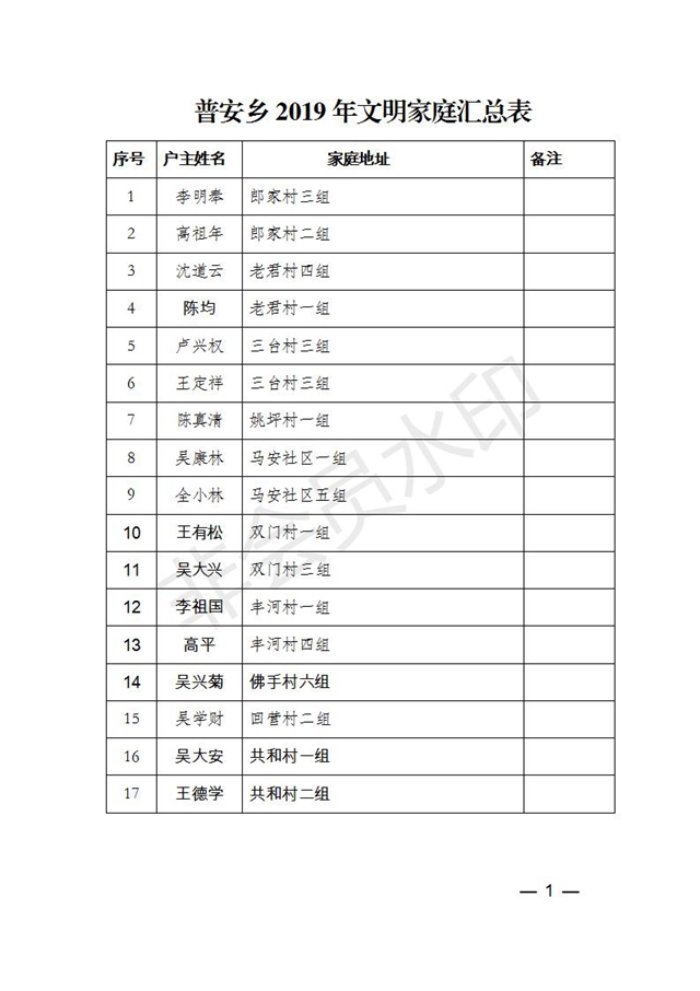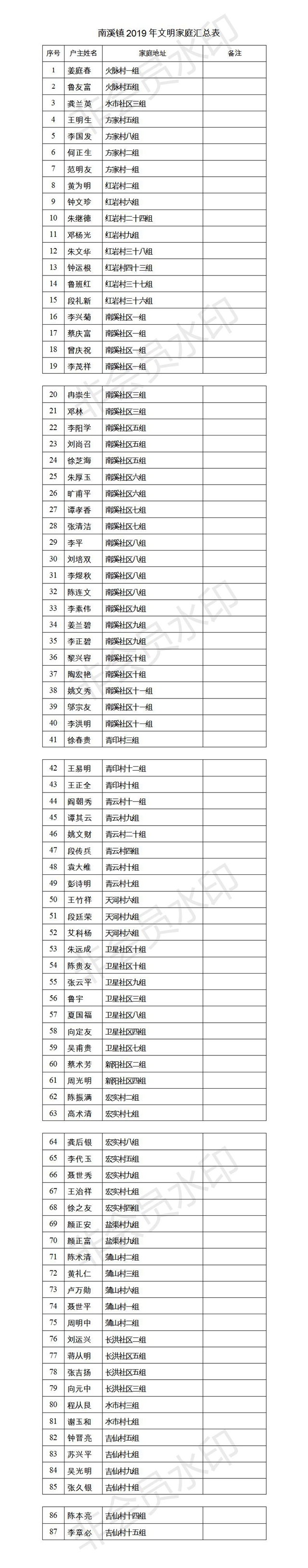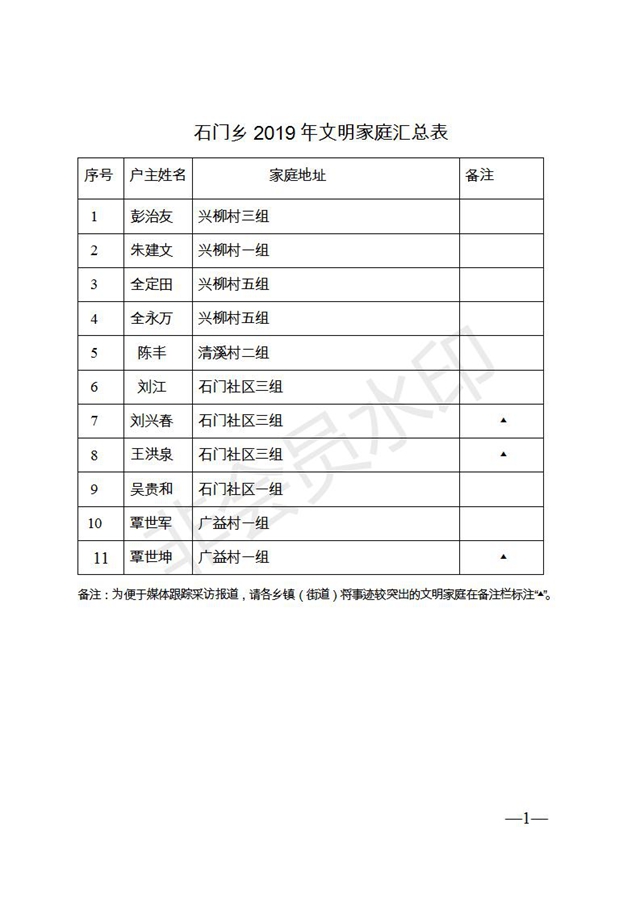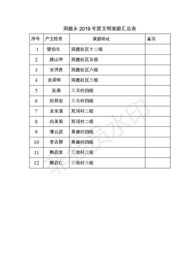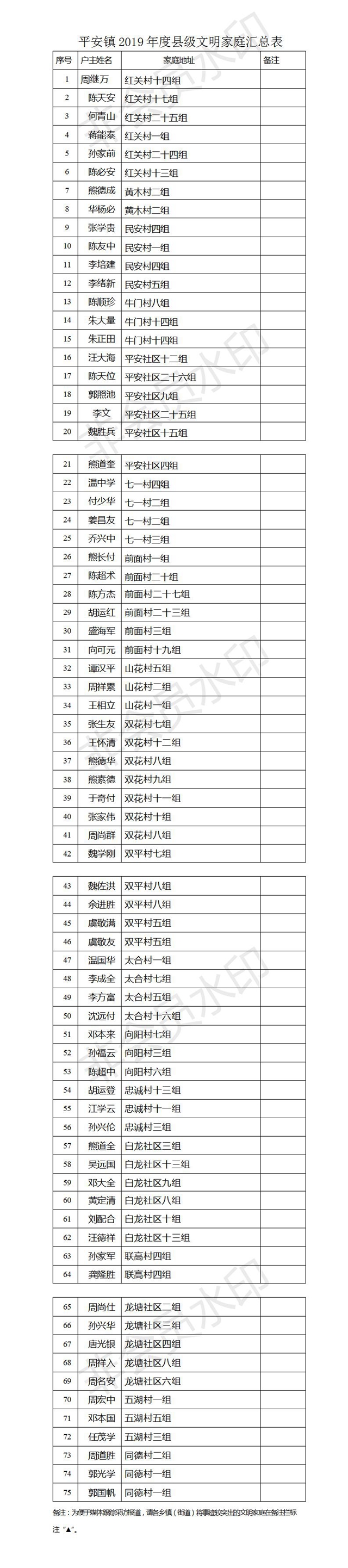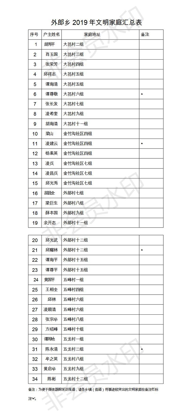 根據(jù)《云陽縣精神文明建設(shè)委員會關(guān)于深化文明家庭創(chuàng)建評選活動的通知》(云文明委〔2017〕4號)和《關(guān)于對文明家庭創(chuàng)建評選活動有關(guān)事項作出調(diào)整的通知》(云文明辦白頭)文件要求,縣文明辦認(rèn)真組織開展2019年度縣級文明家庭創(chuàng)建評選工作,經(jīng)村(社區(qū))自評、鄉(xiāng)鎮(zhèn)(街道)初評、縣文明辦終評等程序,已評選出2019年度縣級文明家庭。現(xiàn)將2019年度縣級文明家庭名單公示如下。