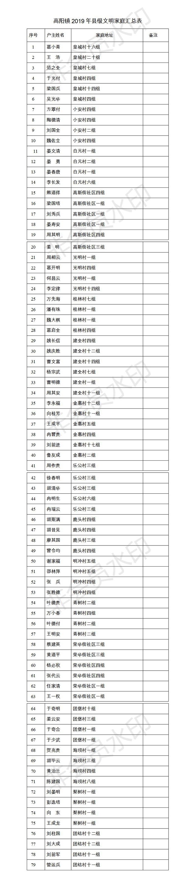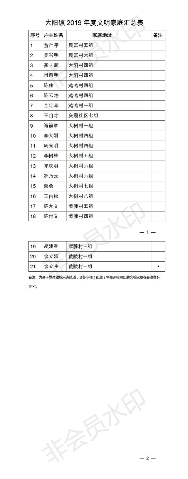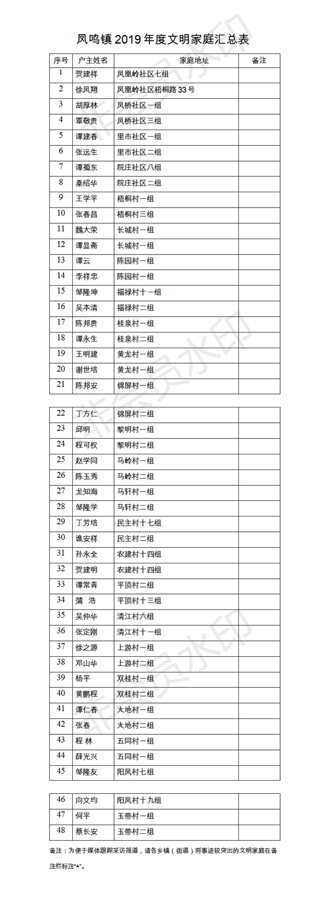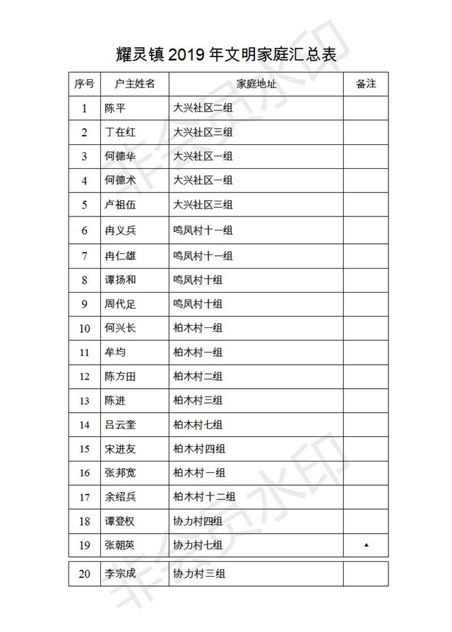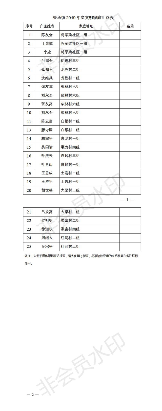 根據(jù)《云陽縣精神文明建設(shè)委員會關(guān)于深化文明家庭創(chuàng)建評選活動的通知》(云文明委〔2017〕4號)和《關(guān)于對文明家庭創(chuàng)建評選活動有關(guān)事項作出調(diào)整的通知》(云文明辦白頭)文件要求,縣文明辦認(rèn)真組織開展2019年度縣級文明家庭創(chuàng)建評選工作,經(jīng)村(社區(qū))自評、鄉(xiāng)鎮(zhèn)(街道)初評、縣文明辦終評等程序,已評選出2019年度縣級文明家庭。現(xiàn)將2019年度縣級文明家庭名單公示如下。