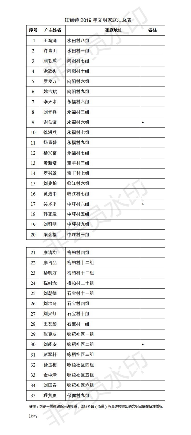 關(guān)于對2019年度縣級文明家庭名單的公示