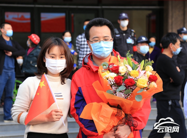 笑聲,掌聲,鮮花,擁抱……4月6日,經(jīng)過在重慶14天的休整,云陽支援湖北孝感12名醫(yī)療隊員乘專車平安回家?!皻g迎回家!”“你們辛苦了!”現(xiàn)場迎接英雄回家的人們沸騰了。