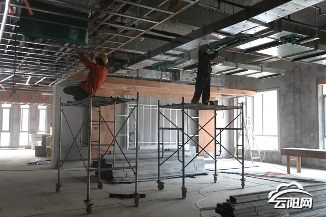 云陽(yáng)網(wǎng)訊(記者 何競(jìng)嘉 付驁)4月8日,北部新區(qū)迎賓大道內(nèi)側(cè)的云商大廈酒店工程施工現(xiàn)場(chǎng),工人進(jìn)進(jìn)出出,忙著進(jìn)行內(nèi)部墻面粉飾、防潮板安裝……記者了解到,該酒店整體項(xiàng)目已進(jìn)入精裝修階段,今年十月開業(yè)迎賓。
