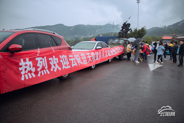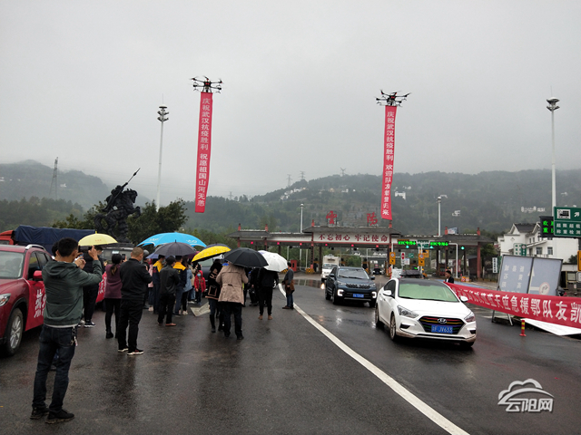 云陽網(wǎng)訊(記者 徐磊磊)4月10日,G42滬蓉高速云陽收費站,天空飄起綿綿細(xì)雨,但澆不滅迎接英雄回家的熱情。結(jié)束14天的休整后,云陽援鄂藍(lán)天救援隊隊員賀皓亮、蔣仁華經(jīng)萬州返回云陽。前來迎接他們的隊友、親朋在收費站前廣場拉起橫幅、手捧鮮花,翹首以盼。