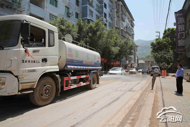 云陽網訊(記者 鄧磊 唐斌)霧狀的水珠從車上噴灑出后,公路周邊的空氣也清新濕潤了許多。4月15日,一輛灑水車正在黃石場鎮公路上進行灑水作業,路面的揚塵明顯少了很多。