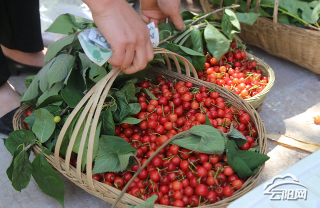 一粒粒櫻桃在燦爛陽光的照耀下,紅艷欲滴。“來嘗哈嘛,我們的櫻桃好吃得很!”四民村村民劉桂蘭正熱情地招呼客人,忙碌中掩飾不住內(nèi)心的喜悅。“從開幕到現(xiàn)在不到一小時,我家的一簸箕櫻桃就賣了100多元。”
