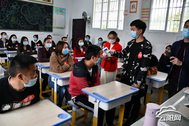 教室內外環境干凈整潔,課桌椅擺放間隔1米,整齊規范。課堂上,教師學生全員佩戴口罩上課,學生單人單座。課前,班主任需開窗換氣,保持室內通風流暢,再手持額溫槍對學生進行體溫測量,并填寫《晨午檢測記錄表》。發現體溫異常學生立即報告校醫,校醫對其核測、確認,將學生帶領到臨時觀察室、再次核實體溫、通知家長等。