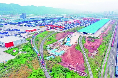 近日,中歐班列(渝新歐)“中國郵政號”首發專列從重慶團結村站發出。新華社記者 唐奕攝
