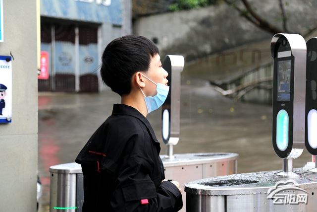 在云陽職教中心校門口,縣公安局網監大隊、青龍派出所民警,縣人民醫院駐校醫生和學校工作人員正嚴陣以待。校門口共設置了2條入校通道,地上標有1米間隔線,同時設有人體紅外測溫門和人臉識別進出系統,每一位學生的信息已通過前期摸排和核驗錄入人臉識別進出系統,學生進門時需進行人臉識別,不符合返校條件者,將被帶入校外隔離觀察室。