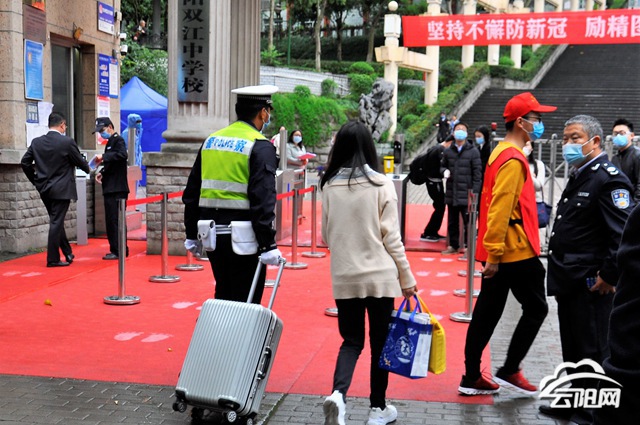 根據(jù)統(tǒng)一安排,雙江中學(xué)高三和初三年級(jí)同學(xué)當(dāng)天下午開始陸續(xù)返校,縣交巡警大隊(duì)雙江中隊(duì)民警和志愿者們?cè)缭缡睾蛟谶@里,協(xié)助學(xué)校開展交通疏導(dǎo)、人員分流、疏散管控、行李搬運(yùn)和排查登記等工作,暖心提醒學(xué)生要戴好口罩,確保自身安全。“我們開學(xué)前已經(jīng)對(duì)校園周邊秩序進(jìn)行了安全隱患排查,今天我們也增派了足夠的警力,還有我們的志愿者一起為初三高三學(xué)子保駕護(hù)航,”雙江中隊(duì)民警易鑫源說(shuō)到。