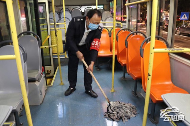 當晚9點30分,記者在現場看到,專線司機正在給車輛進行消毒、通風,并打掃車內衛生,給學生們營造一個安全干凈的乘車環境。