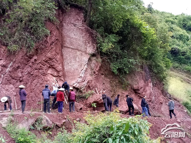 此時,公路上堆滿了山上滾落下來的石頭和樹木,把道路都封死了。考慮到公路完全阻斷,嚴重威脅到行駛車輛和群眾的安全,陳利松一行人向村民借來鐵鍬、鏟子、錘子等工具,冒雨對公路上堆積的樹木和土方進行全面清理。村里的群眾也自發前來幫忙,其中有70歲的組長王華波,73歲的老黨員董紹前,還有8名學生……大家都積極參與到垮方排障工作中。