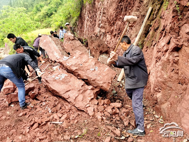 一錘接著一錘,一鏟接著一鏟,經過兩個多小時,干部群眾齊心協力冒雨修路,滑坡處的山石和泥土已全部被清理完畢,公路也恢復通行。“這條路有3千米的土路,今年就會硬化,現在只等著施工方進場,硬化后大家出行就更方便、也更安全了。”陳利松說完后,大家都拍手叫好。