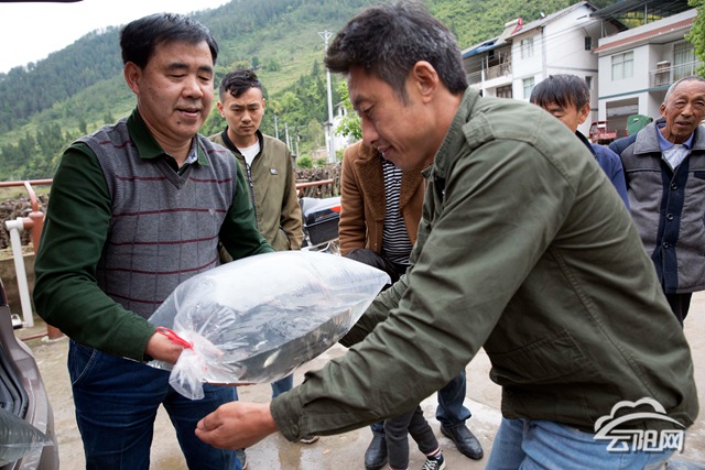 云陽網訊 (記者 劉興敏)“楊宗能,半畝水面,鳊魚和青波魚各半袋;王柏安,一畝半,鳊魚半袋,青波魚一袋……”4月24日,泥溪鎮石蛋村支部書記楊章將重慶市科技特派員、重慶市國家“三區”科技人才、云陽縣進村幫扶科技特派員、市生態漁產業技術體系“水產綠色生態養殖模式研發與示范”功能研究室專家、西南大學副教授鄭永華和唐洪玉贈送的大規格魚種分配到貧困戶和養殖專業戶手中。