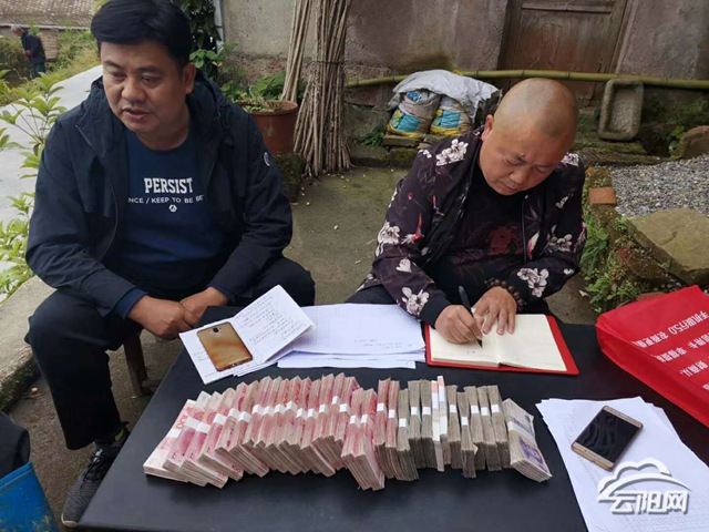 云陽(yáng)網(wǎng)訊(通訊員 于楊)近日,南溪鎮(zhèn)宏實(shí)村召開(kāi)院壩會(huì),豐歌農(nóng)業(yè)開(kāi)發(fā)有限公司工作人員正在為基地150余名務(wù)工農(nóng)戶(hù)發(fā)放前兩個(gè)月的工資,這是復(fù)工后第一筆勞務(wù)工資。農(nóng)戶(hù)們焦急而又耐心地等待工作人員叫自己的名字,難掩內(nèi)心的喜悅。