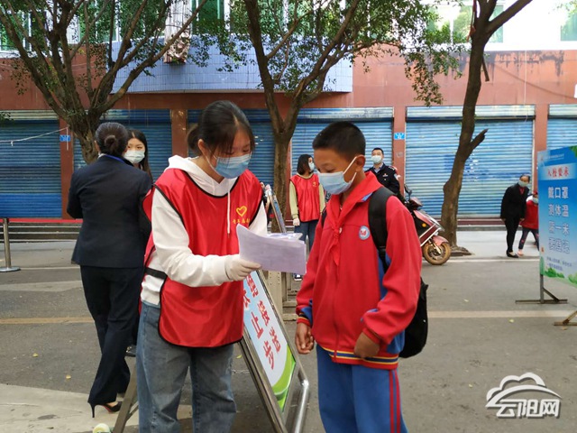云陽網訊(記者 熊力毅 實習生 洪琳)4月27日,我縣高一、高二、初一、初二及小學四五六年級學生開學報到。團縣委組織志愿者到各校開展志愿服務活動,助力學校復學復課工作。