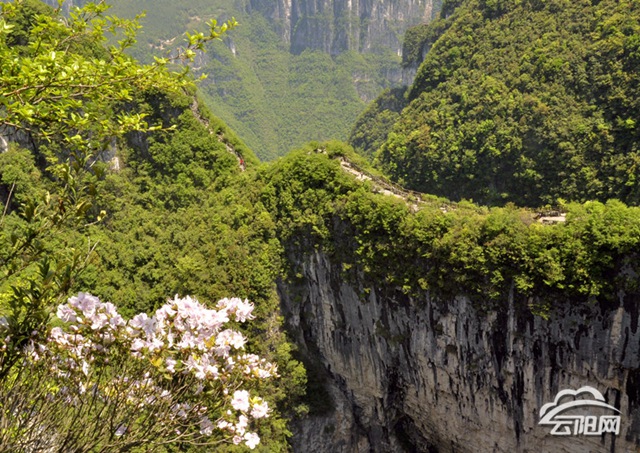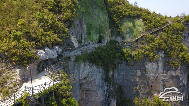 新修建的路線從龍缸景區沿龍缸景區北邊羅漢峰缸壁而建,主要以絕壁棧道為主,全長約1500米。沿著絕壁棧道拾級而上,沿途野花盛開,林木蔥郁,游客不僅可以體驗到行走懸崖峭壁的驚心動魄,還可以從另一個角度一覽龍缸天坑的雄姿,同時也有在游客高峰期分流游客等作用。
