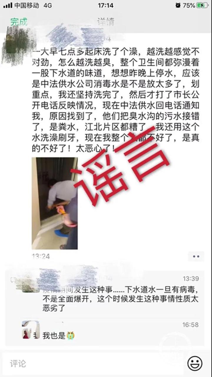 經市委網信辦與中法供水公司核實,此網傳消息為不實信息。中法供水公司已經就此發布了《關于北濱二路水質異常的公告》進行辟謠。