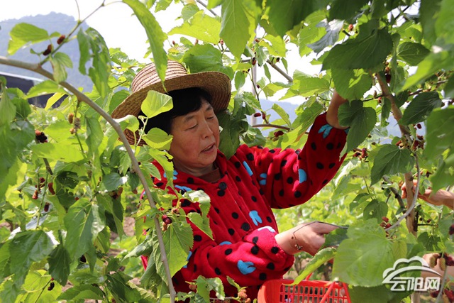 “聽說這里的桑葚熟了,就趁著天氣放晴,出來走一走,放松一下。”正在采摘桑葚的游客張女士說,“摘的這些桑葚顏色濃郁,顆粒飽滿,味道酸甜,既好看又好吃。”