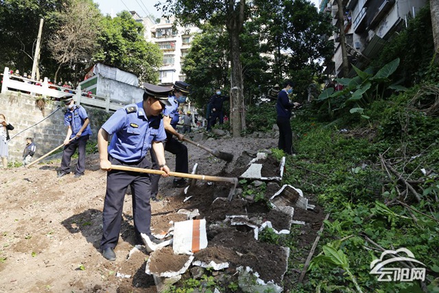 云陽網訊(記者 段斯斯 王彬彬)4月29日,縣城市管理綜合行政執法支隊聯合縣公園管理所、社區工作人員開展了毀綠種菜集中整治行動,還市民一片綠。