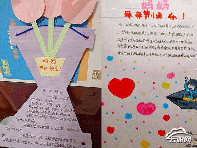 為了讓孩子們從小懂得體諒母親的辛苦與付出,弘揚中華民族孝敬父母的傳統美德,該校為孩子們布置了特別的作業:召開一次“感恩父母”主題班會;制作一份《感恩母親愛心檔案》送母親;向母親道一聲感謝和祝福;為母親做一件力所能及的事;講一個“我和母親的故事”;送母親一份自制的節日禮物。“媽媽,我愛你!等我長大了,我會成為您和爸爸的大樹,為你們遮風避雨。”孩子們寫下自己的心里話,制作康乃馨花束等獻給媽媽。一句句感恩的話語,一個個感動的故事,一份份深情的禮物,表達了孩子們對母親的無限愛意。