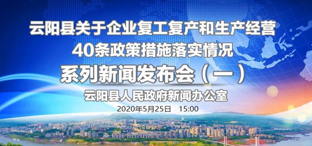 云陽網訊 5月25日(星期一)下午3:00,云陽縣人民政府新聞辦公室將舉行云陽縣關于企業復工復產和生產經營40條政策措施落實情況系列新聞發布會第一場。進一步解讀在疫情期間階段性降低企業用電、用水、用氣成本的政策措施,通報目前我縣落實情況和下一步工作打算。邀請縣發展改革委副主任彭武、縣城市管理局副局長羅倫、國網重慶云陽供電分公司副總經理傅軍、縣天然氣公司副總經理曾蓉介紹相關情況,并回答記者提問。屆時,云陽縣融媒體中心將通過智慧云陽APP、云陽網和云陽手機臺等全媒體平臺進行視頻、圖文直播。