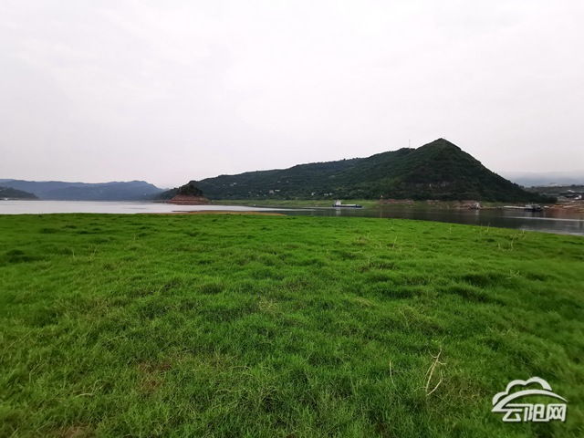 云陽:庫區水位降至151米 天然草坪顯露美如畫
