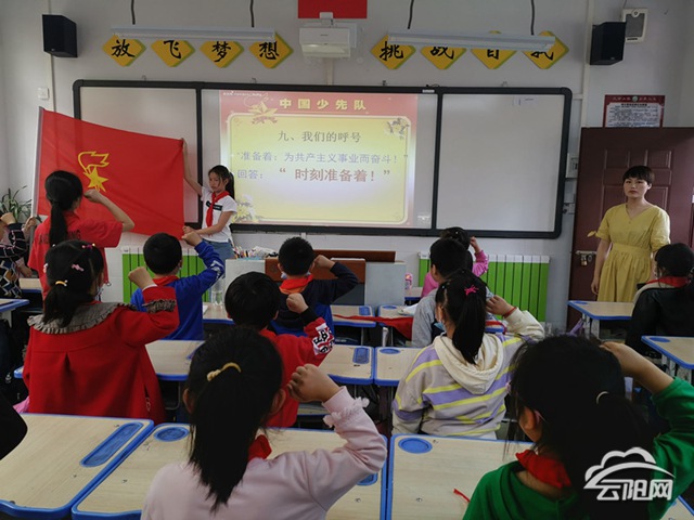 活動(dòng)分為不同年級(jí)舉行,一年級(jí)的孩子們舉行入隊(duì)儀式,學(xué)習(xí)隊(duì)前教育,了解隊(duì)史、少先隊(duì)標(biāo)志禮儀,學(xué)習(xí)紅領(lǐng)巾的正確系法,老師們耐心地教授,孩子們虛心地學(xué)習(xí)。隨后,孩子們一起齊唱隊(duì)歌,為入隊(duì)做準(zhǔn)備。