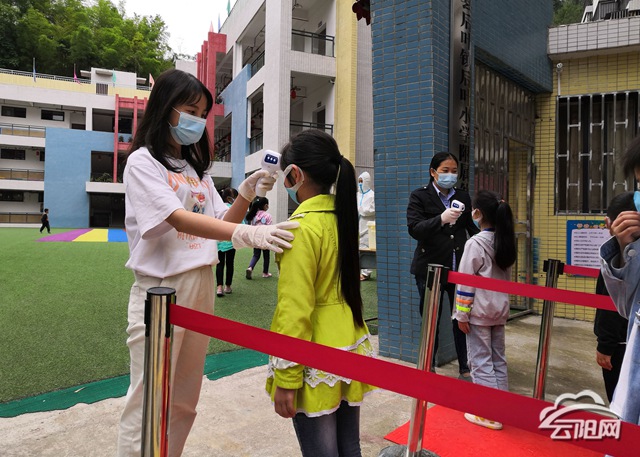 云陽網訊(通訊員 王軍 陳林)5月28日,后葉小學附屬幼兒園開展了開學疫情防控演練,邀請了小學一年級的學生模擬開學后幼兒小朋友入園活動及教師突發應急事件處置過程演練。