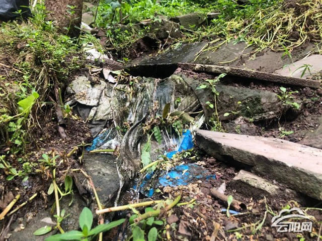斜坡上面五同路124號連著幾棟樓的生活污水