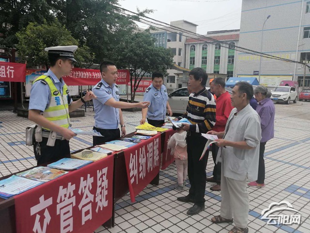 云陽網訊(通訊員 易守菊)6月10日,水口派出所組織民警工作人員,深入到轄區村組、社區人口密集處,開展交管答疑、糾紛調解、戶政解答、法律咨詢和民生警務宣傳村組行活動。