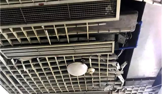 天花板也是破舊不堪,老感覺頭上的天花板會掉下來,走在下面,提心吊膽……
